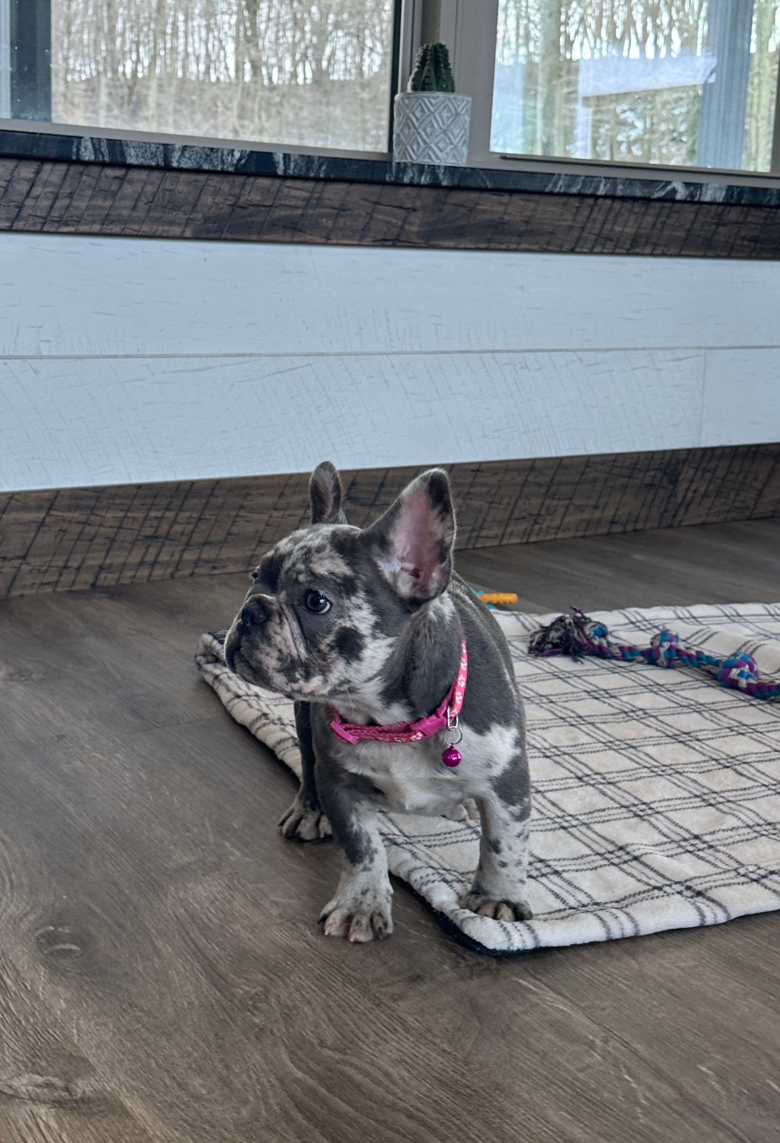 Check out this stunning and adorable stocky blue Merle French bulldog puppy. She is an adorable and cute little girl.Bailey is very energetic and playful .