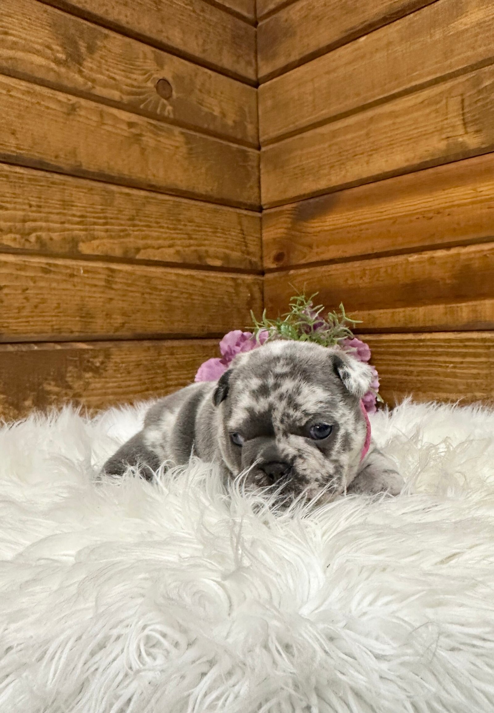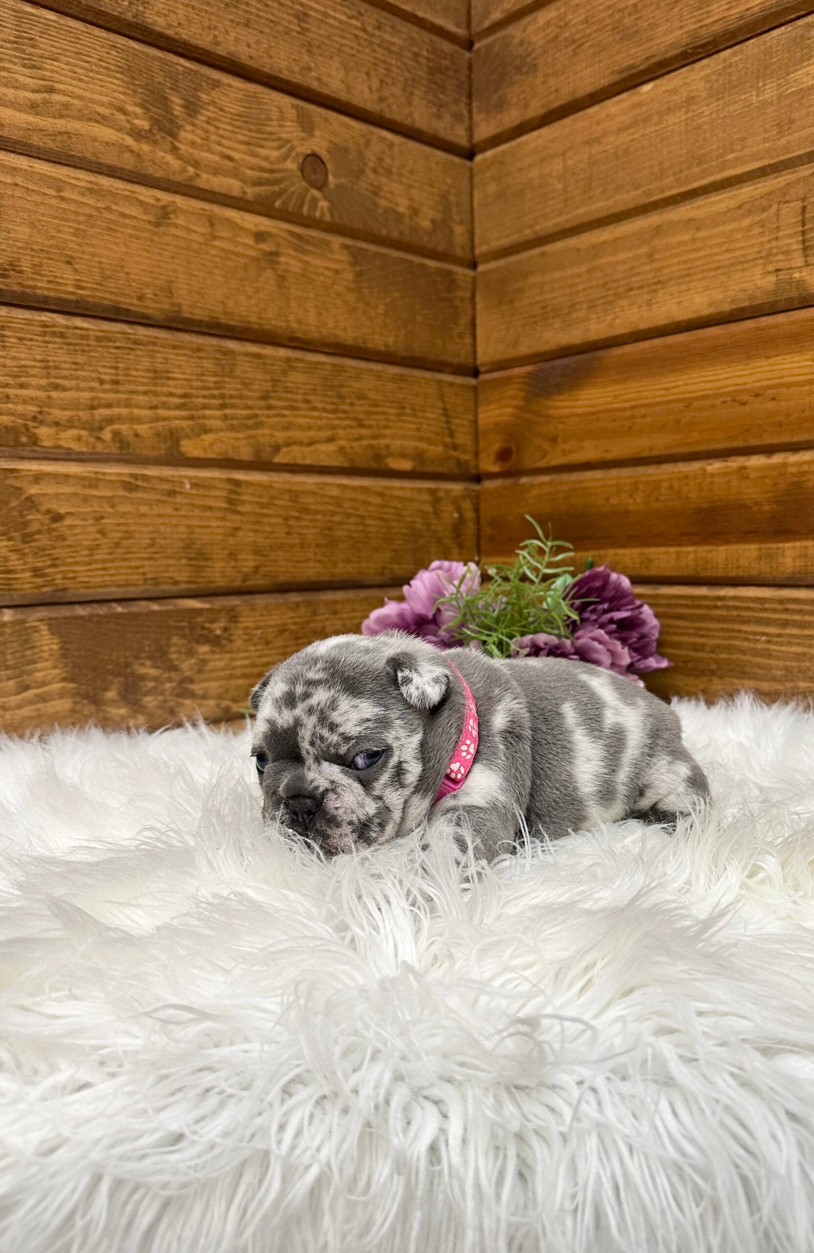 Check out this stunning and adorable stock blue Merle French bulldog puppy. She is an adorable and cute little girl.