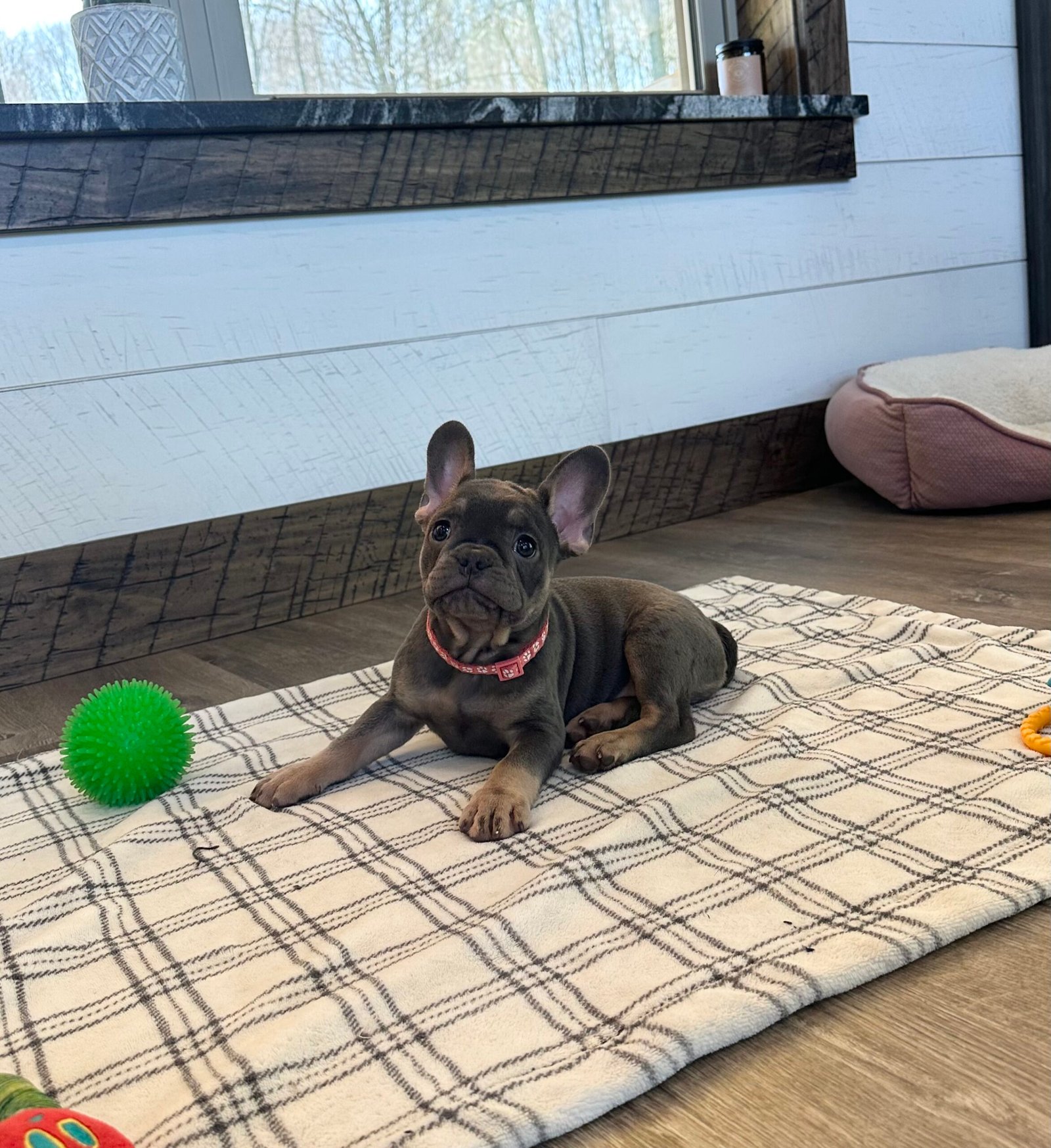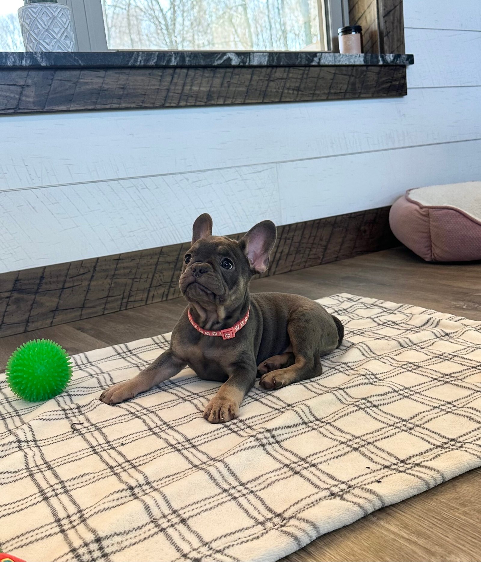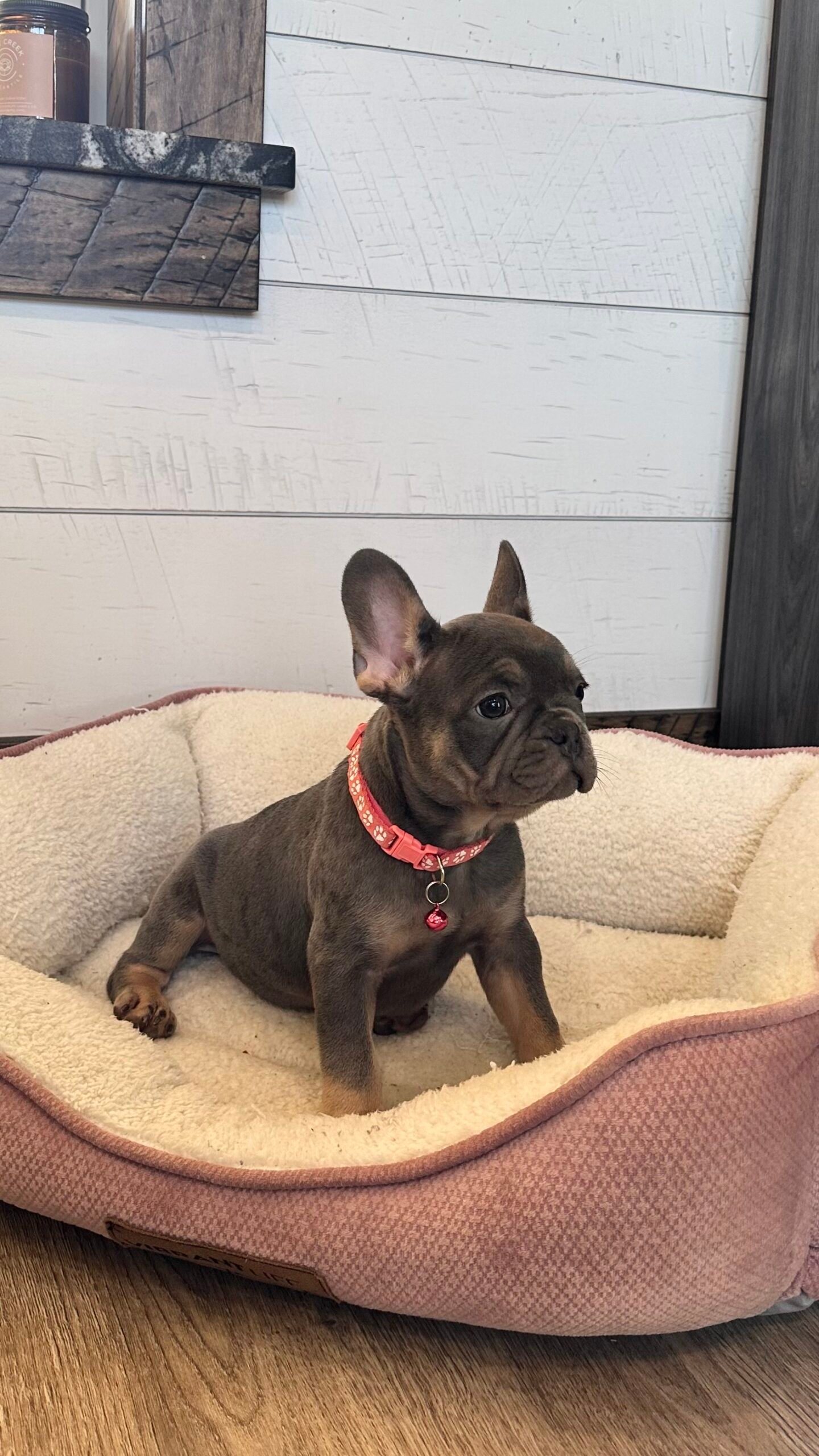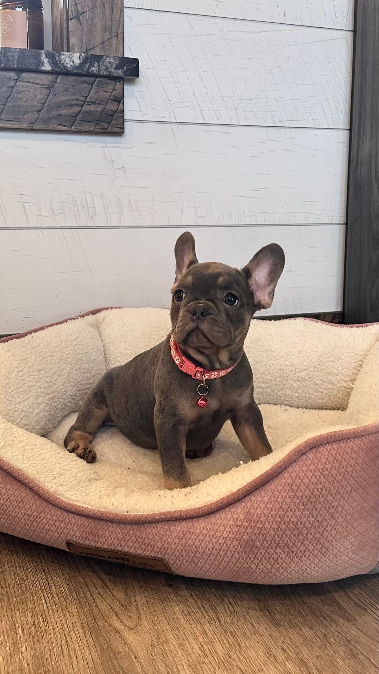 Check out this adorable Blue Tan Frenchie puppy, which will come with full AKC registration. Beau is vet-checked and all clear. Beau has lots of energy and is very well socialized with other puppies and children.