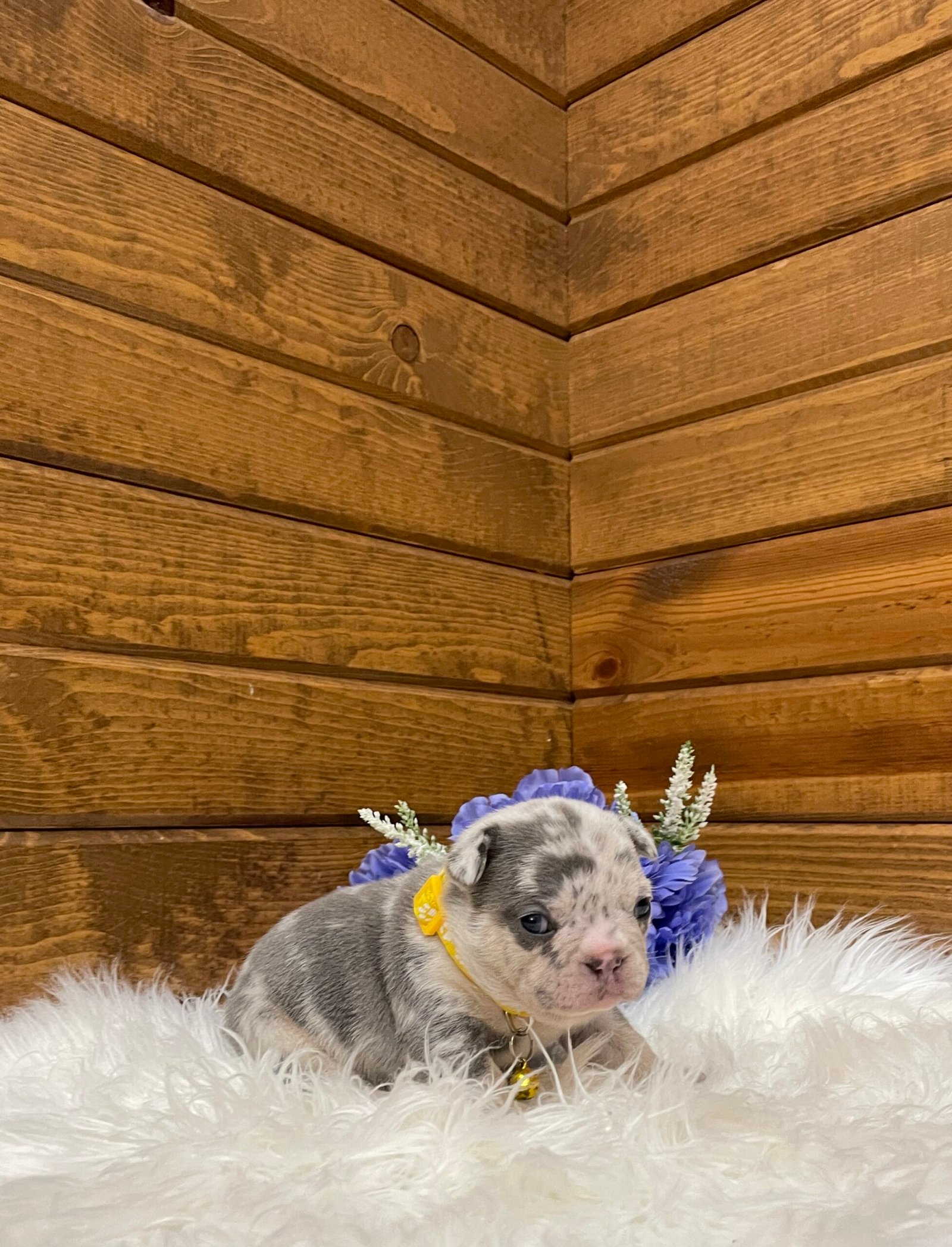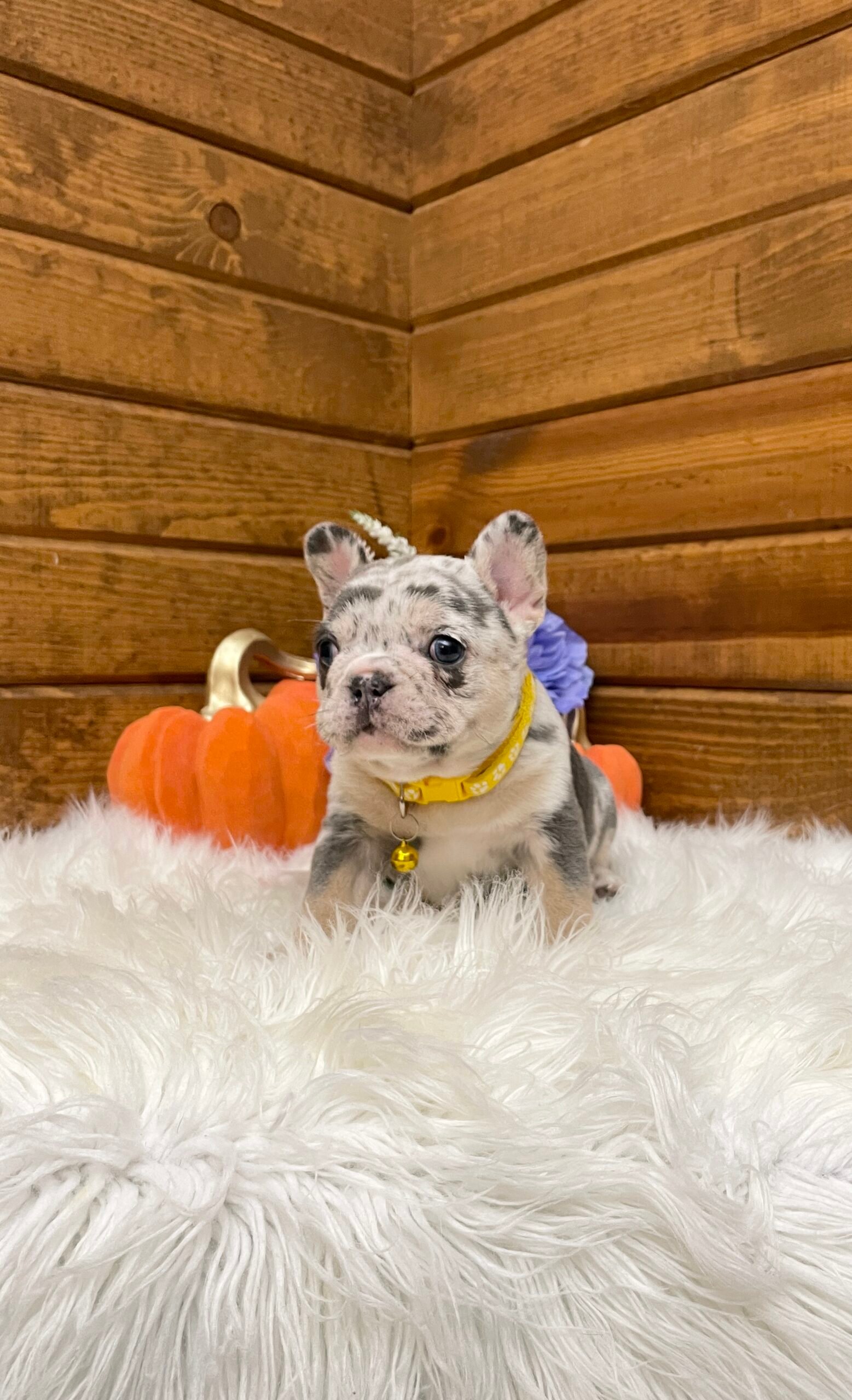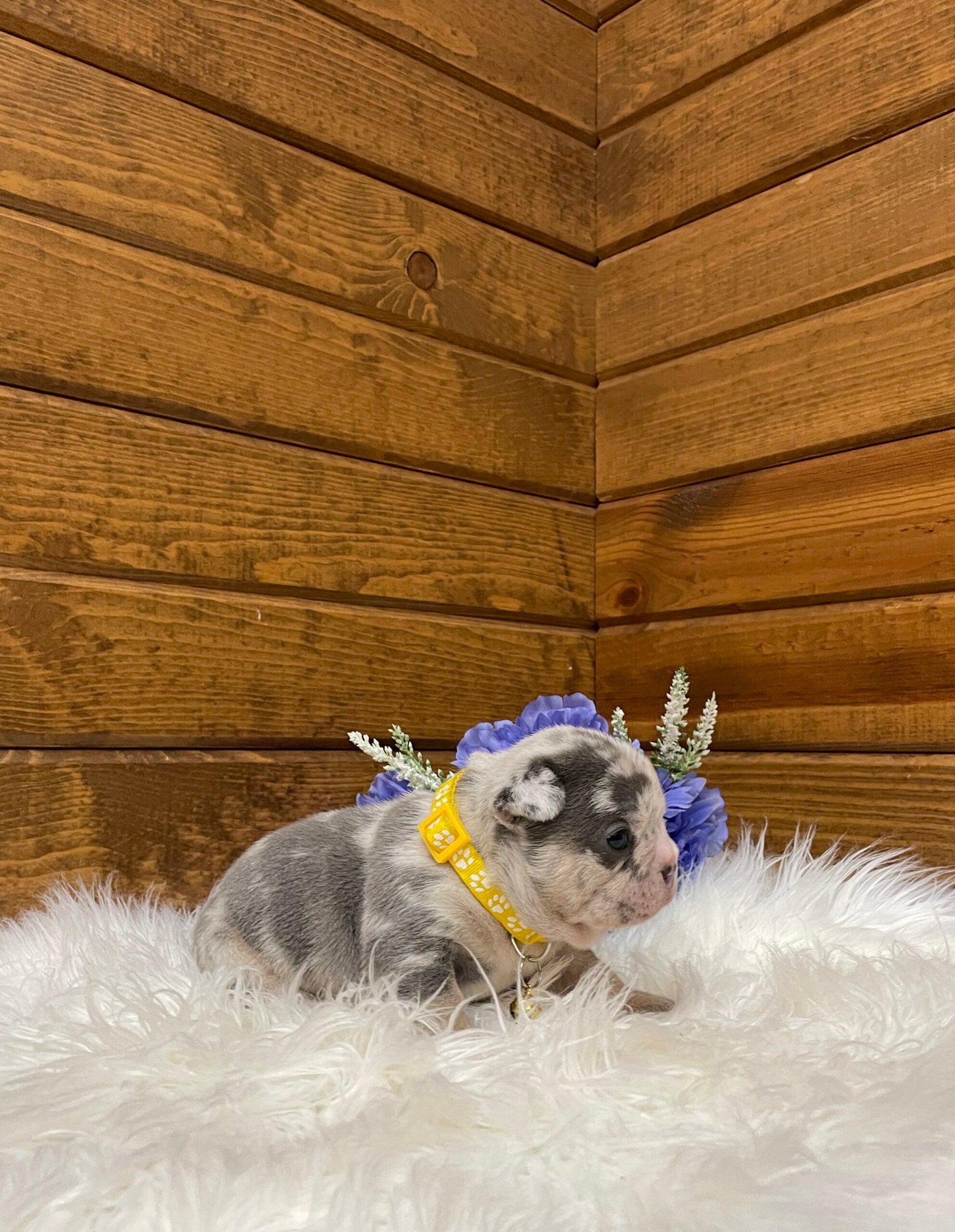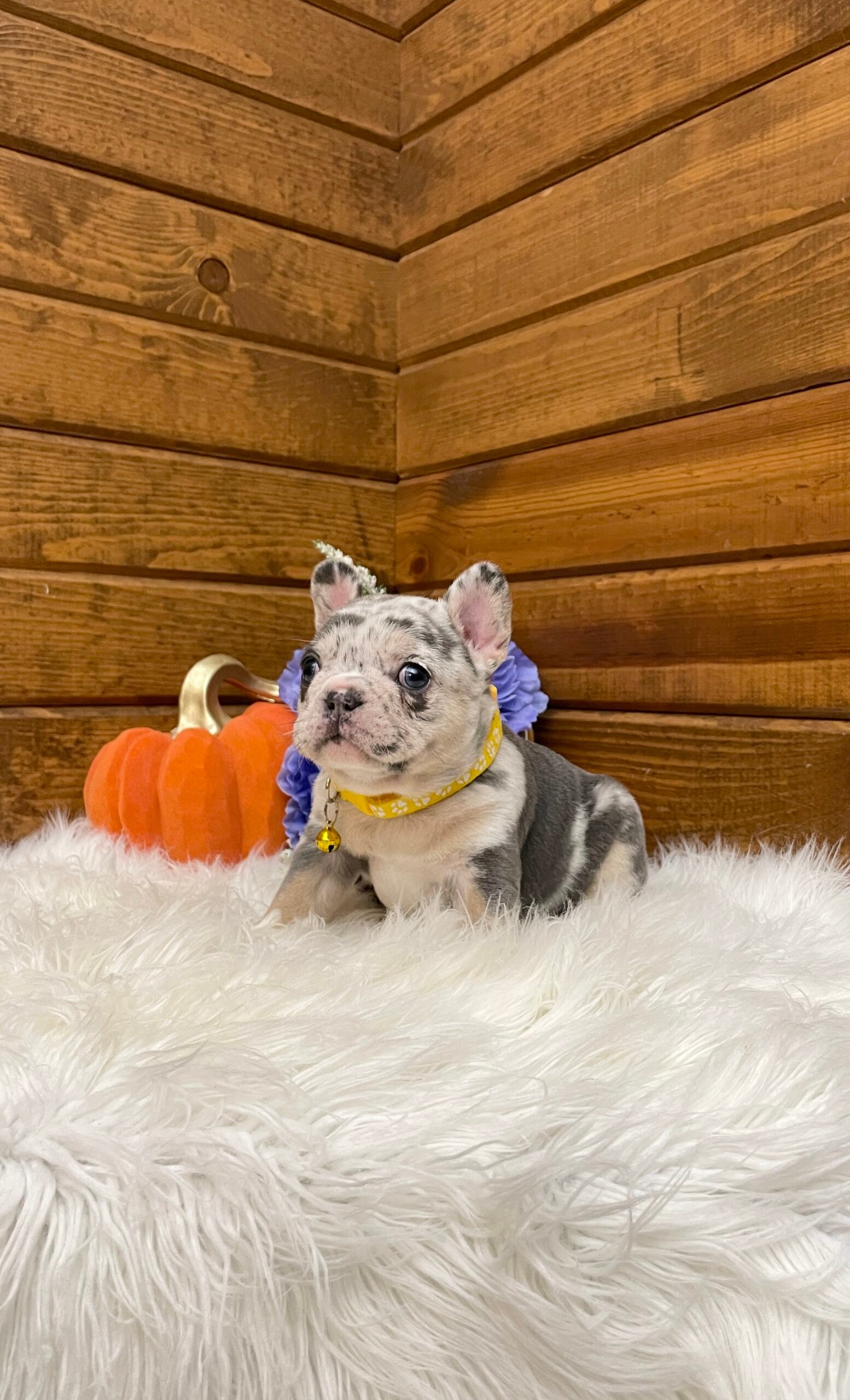 Blaze is a beautiful and stocky blue Merle French bulldog puppy.