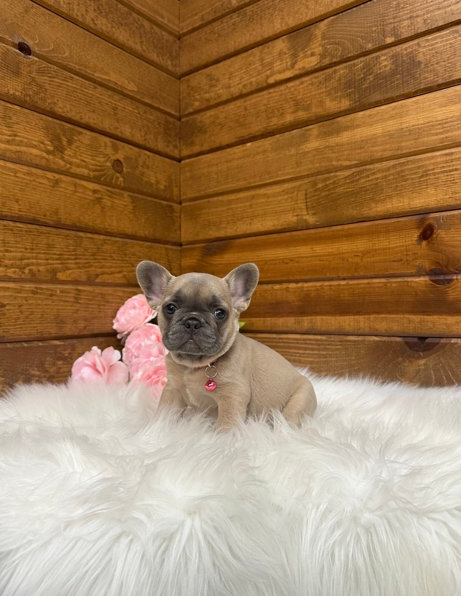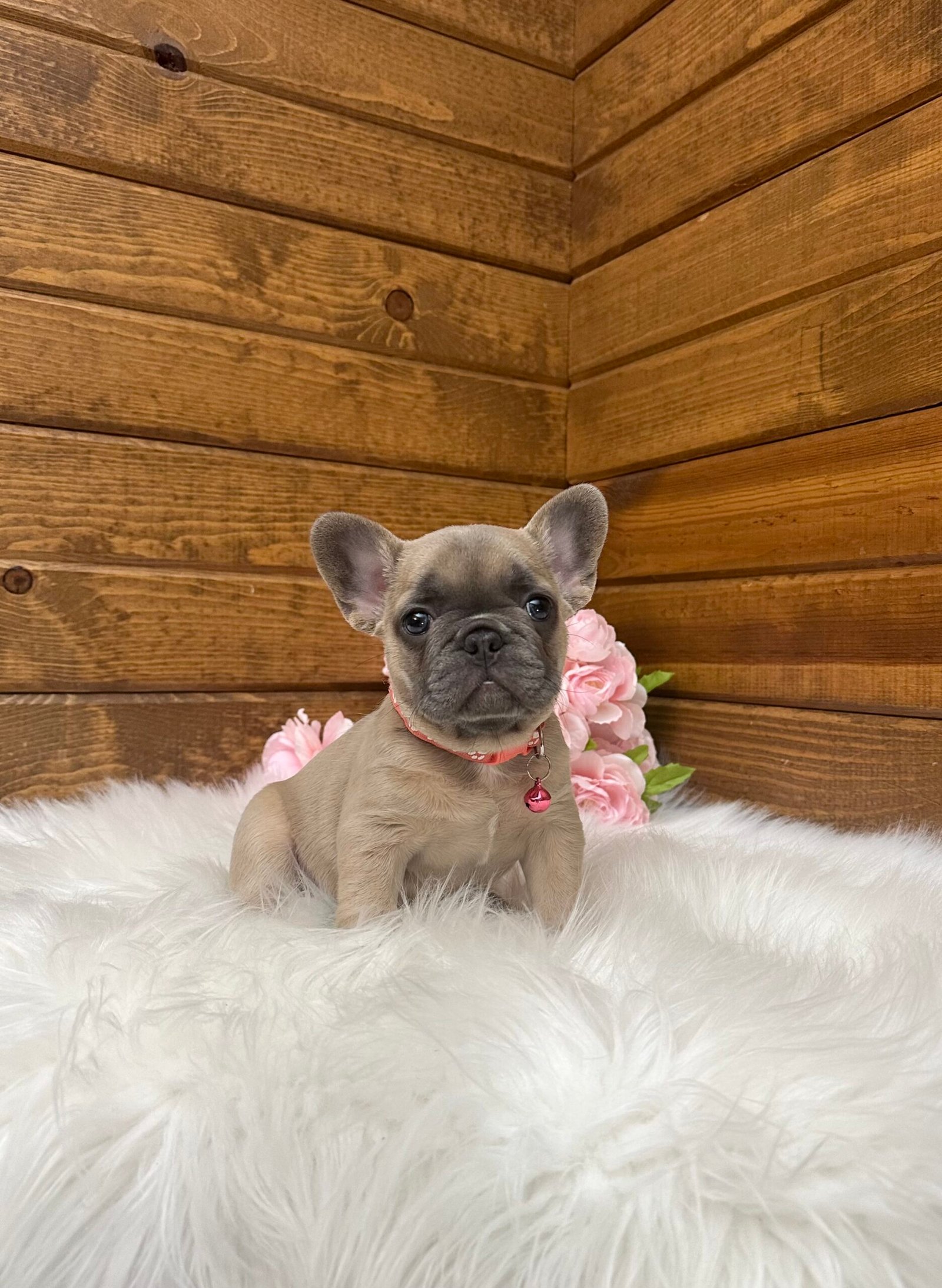 Meet Millie, a stunning blue fawn AKC French Bulldog with a rare, eye-catching coat that blends soft fawn tones with a cool blue/silver haze ✨ Her unique coloring gives her that signature “smoky” look with a beautiful bluish mask that truly stands out. Blue fawn Frenchies are known for their silky, light tan coats with subtle gray undertones, making them one of the most sought-after and distinctive variations