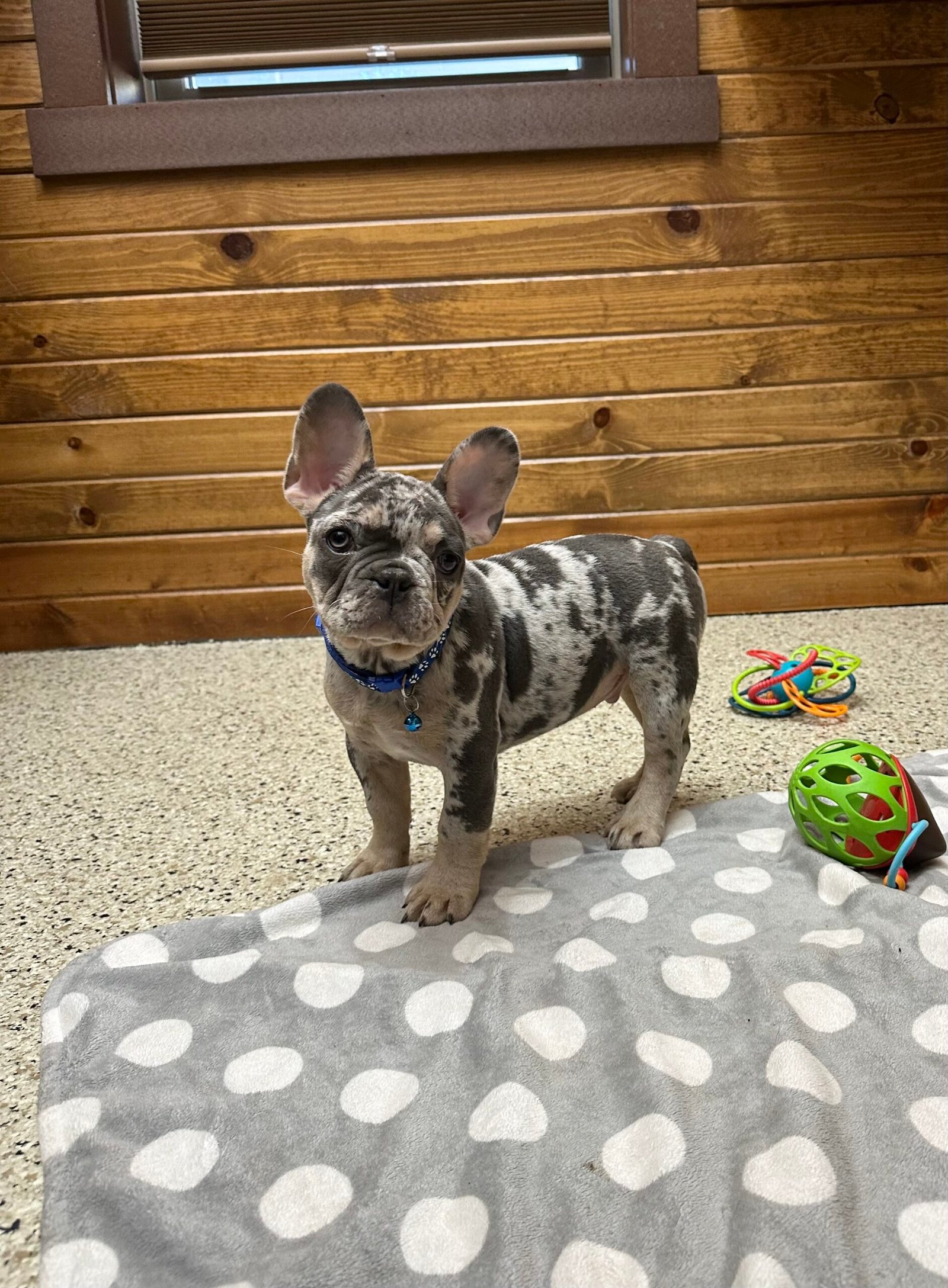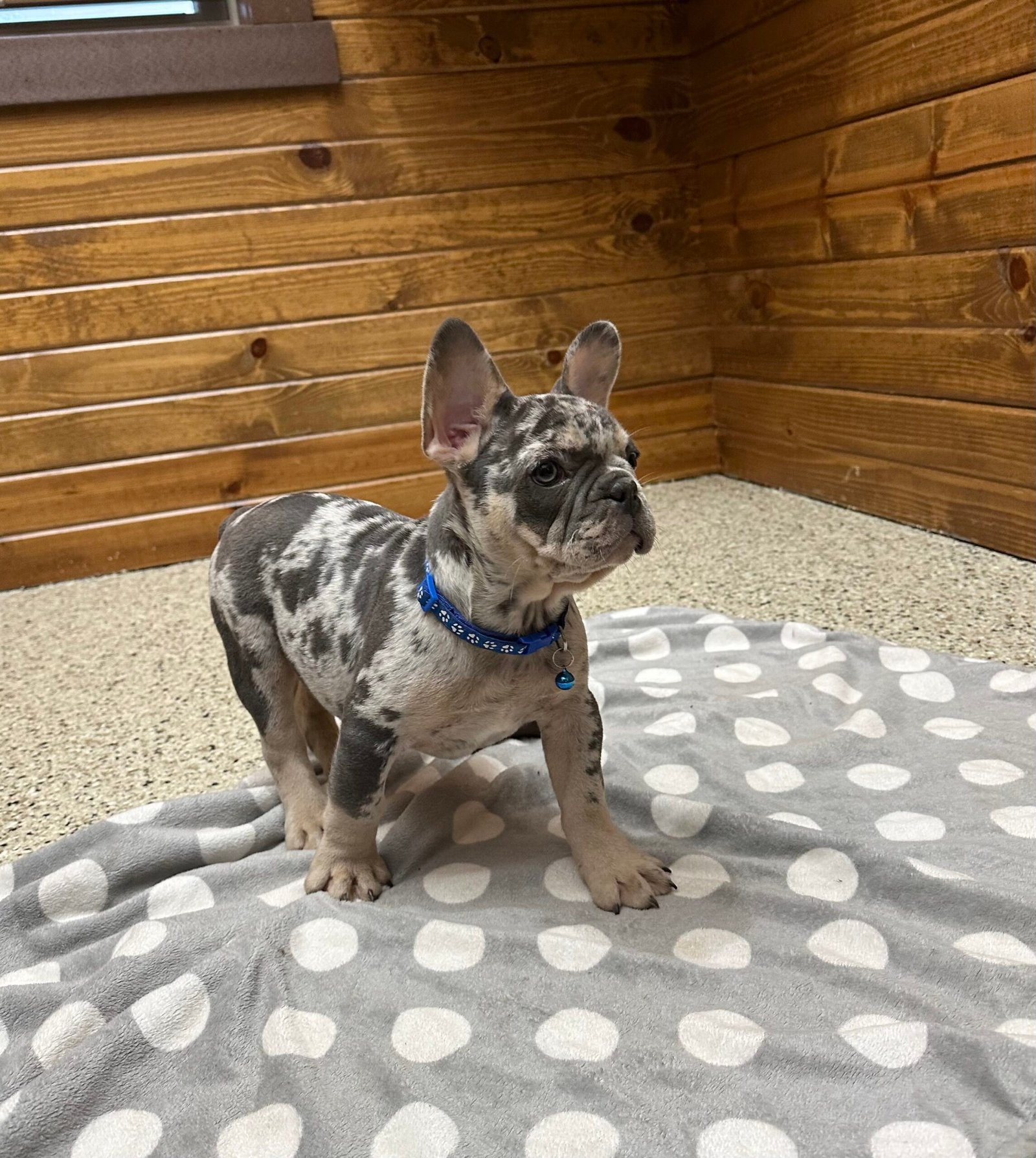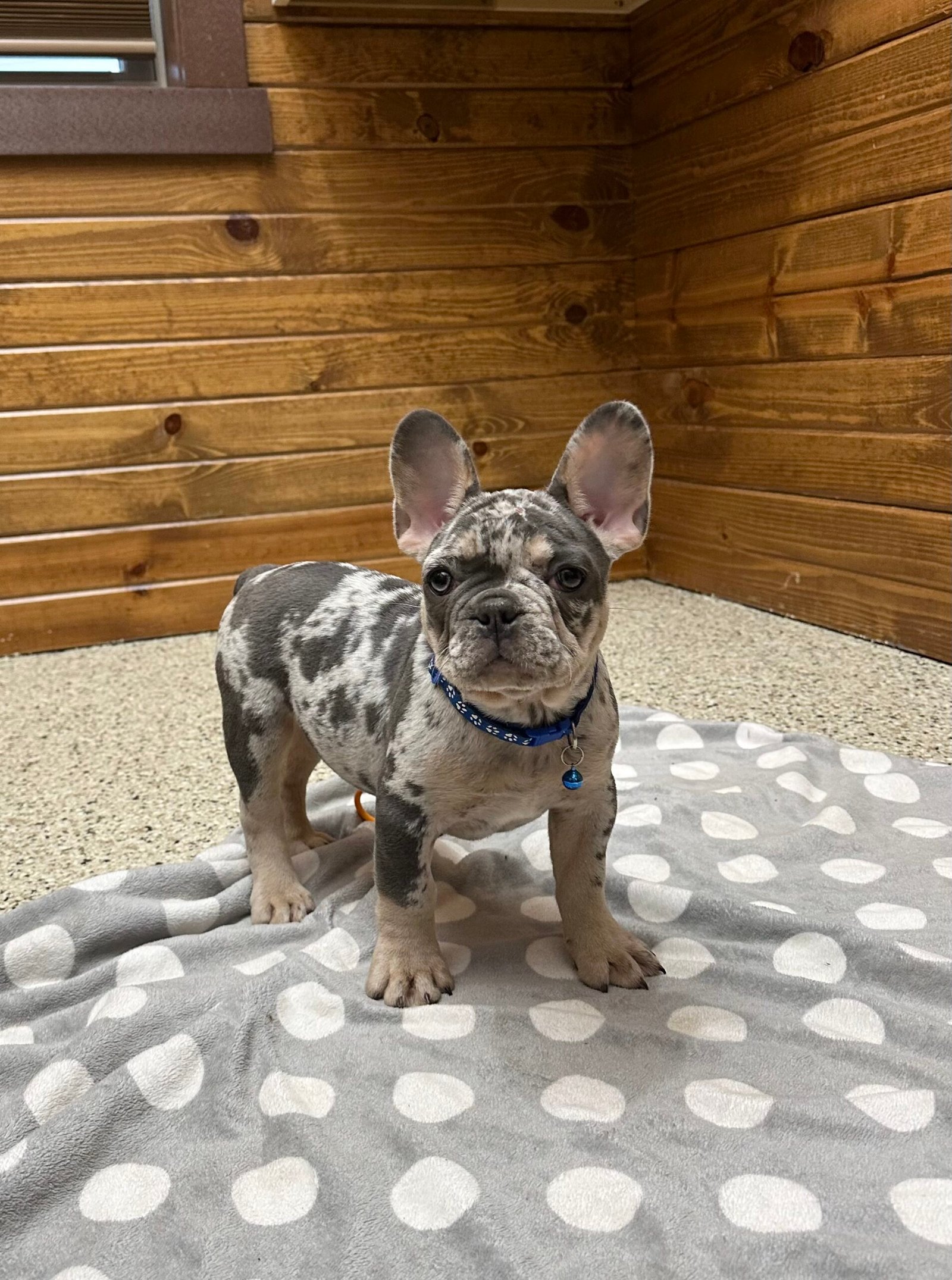 Triston is a very friendly and social French Bulldog. He loves playing with children and his littermate, and enjoys being held, He is more on the late back side makes him very sweet and adorable . Triston has a beautiful blue tan Merle coat. He’s all up-to-date with vet check-ups, vaccinations, and deworming. Feel free to contact us for more pictures and videos!