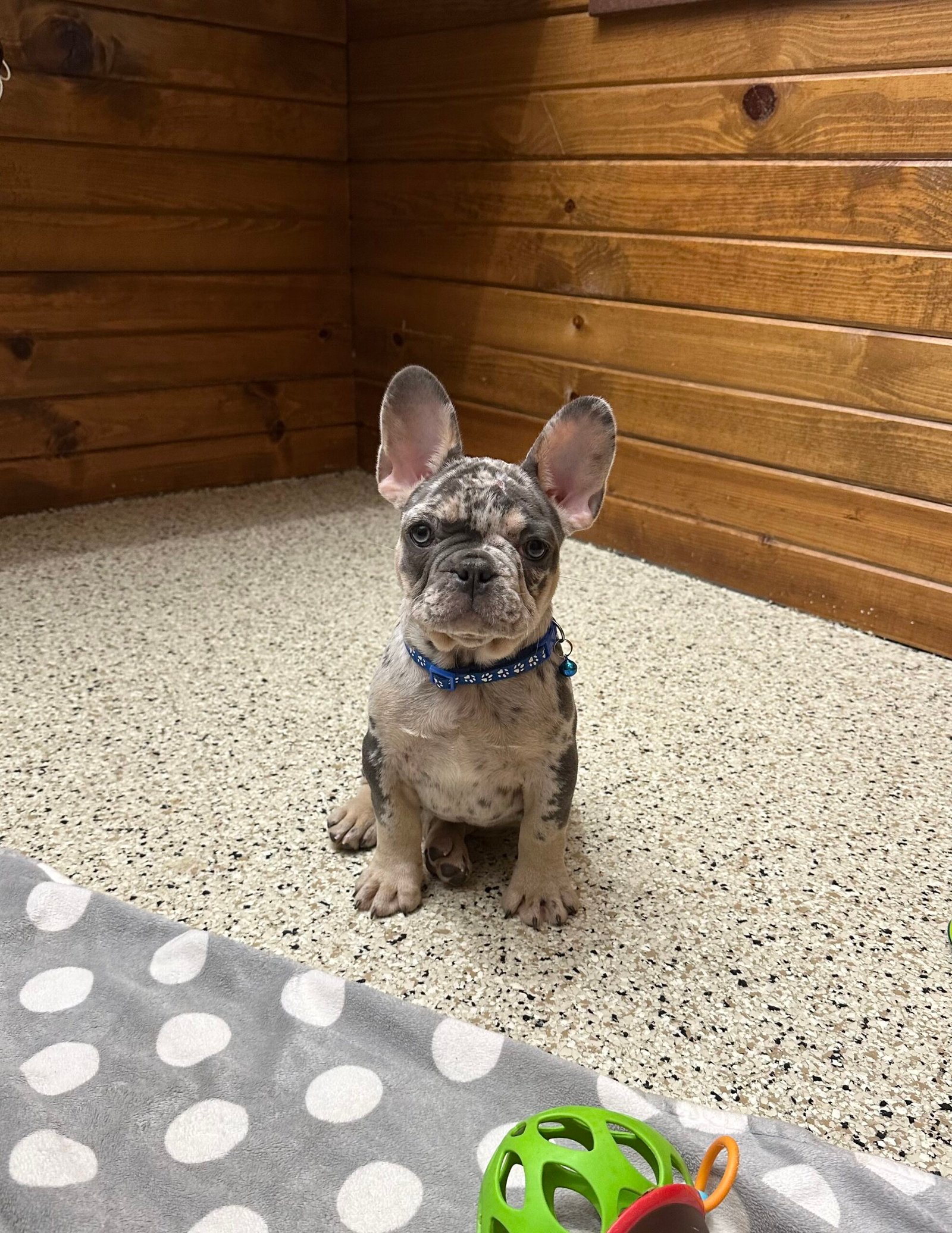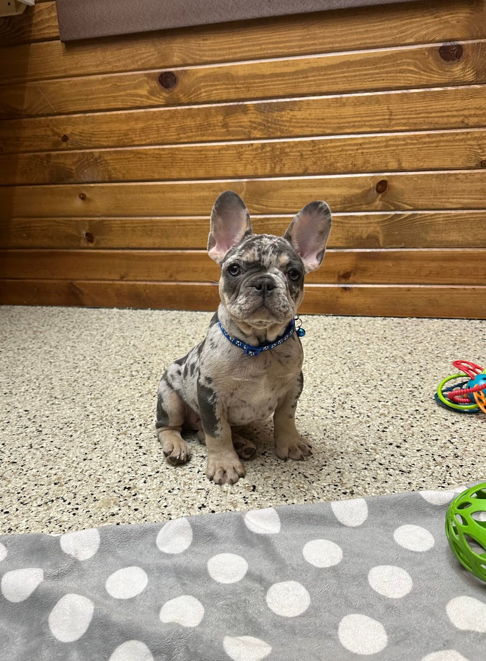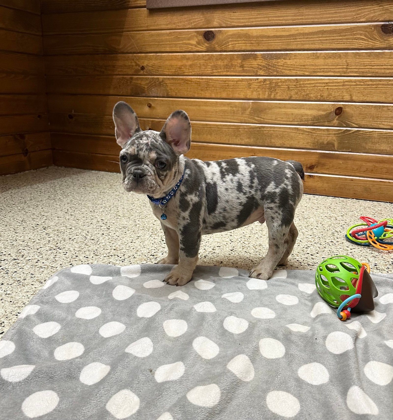 Triston is a very friendly and social French Bulldog. He loves playing with children and his littermate, and enjoys being held, He is more on the late back side makes him very sweet and adorable . Triston has a beautiful blue tan Merle coat. He’s all up-to-date with vet check-ups, vaccinations, and deworming. Feel free to contact us for more pictures and videos!